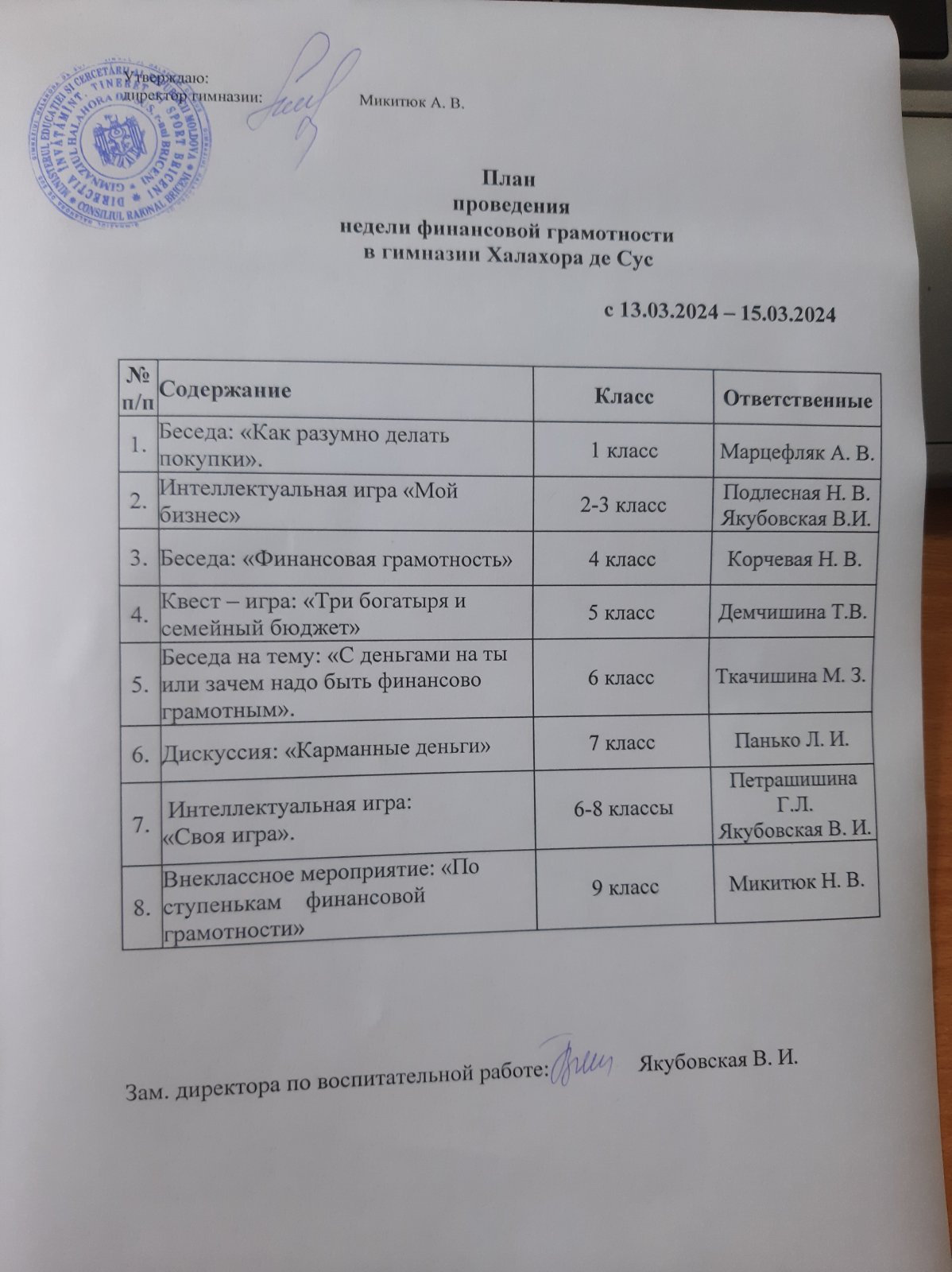 В гимназии Халахора де Сус с целью повышения финансовой грамотности обучающихся, содействия формированию разумного финансового поведения, обоснованных решений, ответственного отношения к личным финансам, повышение эффективности защиты их интересов как потребителей финансовых услуг.